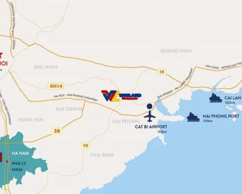 - Cách cao tốc Hà Nội – Hải Phòng: 50 km